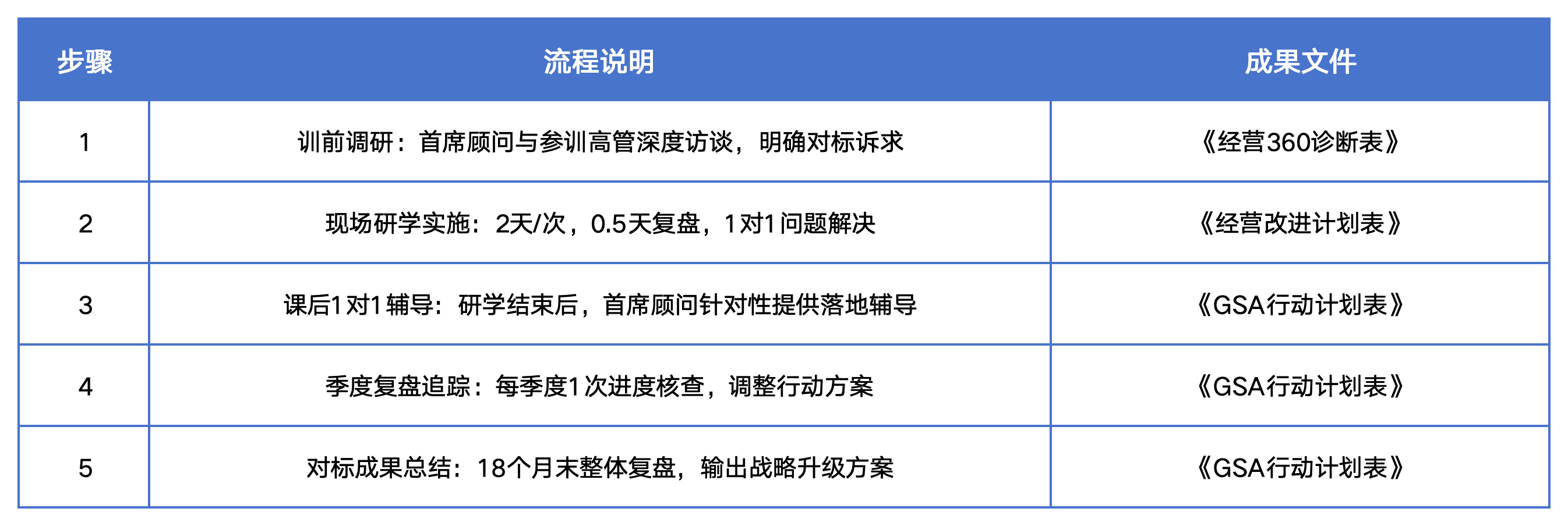 3. 18个月陪跑落地:每季度聚焦1次战略复盘,从“对标学习”到“实践验证”,确保战略落地不走样;
