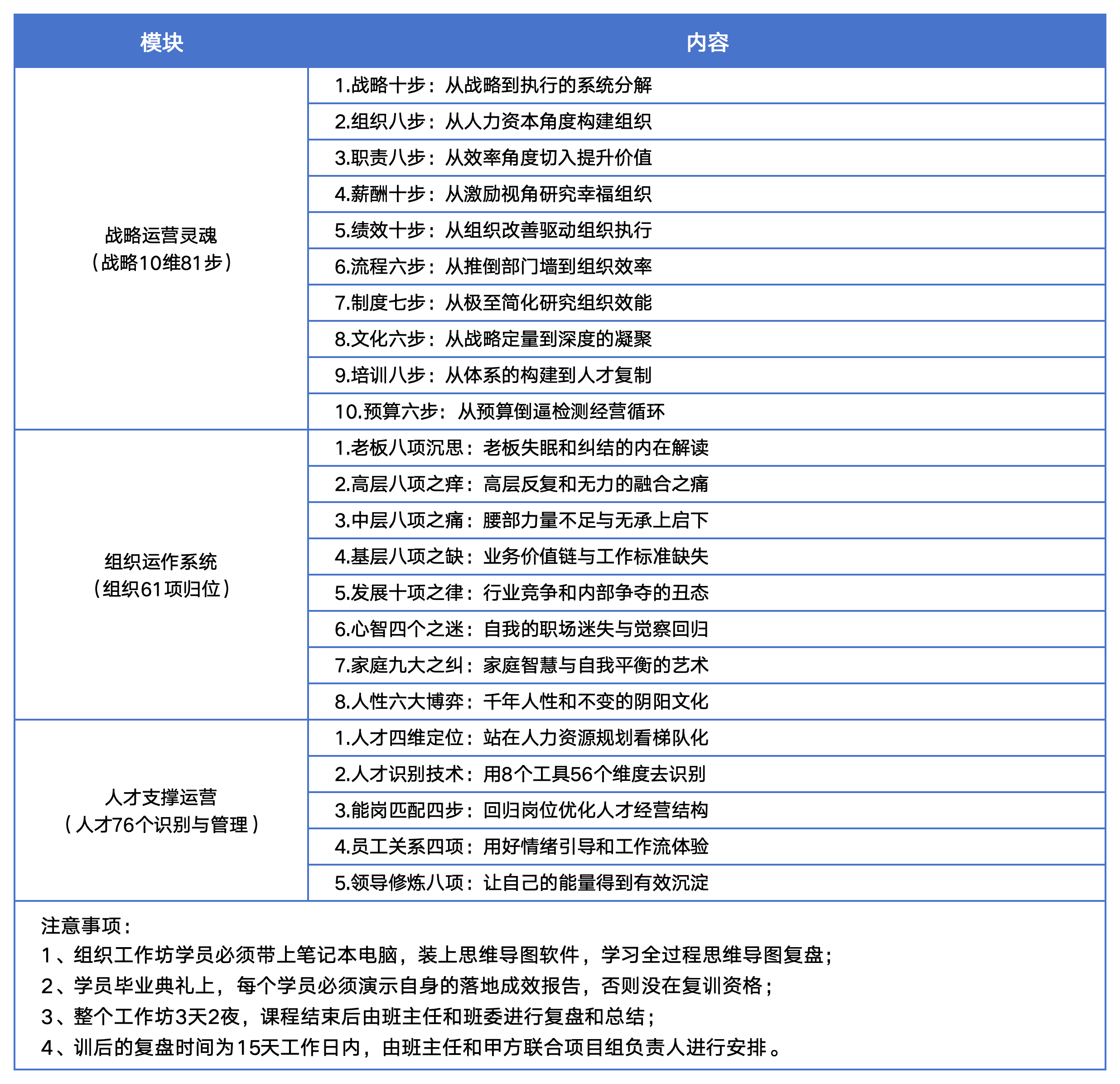 4. 植入行动学习闭环体系,训后形成企业内部变革小组,由顾问持续跟踪辅导变革落地。